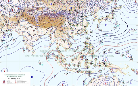 - ประเทศไทยตอนบนมีอุณหภูมิสูงขึ้นเล็กน้อย กับมีหมอกในตอนเช้าและมีหมอกหนาในบางพื้นที่ โดยมีฝนเล็กน้อยบางแห่ง ส่วนภาคเหนือ และภาคตะวันออกเฉียงเหนือ ยังคงมีอากาศเย็นต่อเนื่อง โดยภาคเหนือ อุณหภูมิ 13-33 องศาเซลเซียส ส่วนภาคตะวันออกเฉียงเหนือ อุณหภูมิ 16-33 องศาเซลเซียส ภาคกลางและภาคตะวันออก อุณหภูมิจะสูงขึ้นเล็กน้อย อากาศเย็นกับมีหมอกในตอนเช้าและมีหมอกหนาบางพื้นที่ โดยมีฝนเล็กน้อยบางแห่ง อุณหภูมิเฉลี่ยที่ 18-34 องศาเซลเซียส ภาคใต้ มีฝนฟ้าคะนองร้อยละ 10-20 ของพื้นที่ อุณหภูมิ 20-34 องศาเซลเซียส กรุงเทพมหานครและปริมณฑล อุณหภูมิจะสูงขึ้นเล็กน้อย กับมีหมอกในตอนเช้าและมีหมอกหนาบางพื้นที่ กับมีฟ้าหลัวในตอนกลางวัน โดยมีฝนบางแห่ง อุณหภูมิ 23-34 องศาเซลเซียส