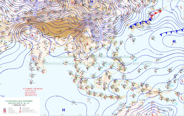- ลมตะวันตกปกคลุมภาคเหนือและภาคตะวันออกเฉียงเหนือตอนบน ทำให้ภาคเหนือและภาคตะวันออกเฉียงเหนือตอนบนมีอากาศเย็นถึงหนาวในตอนเช้า ในขณะที่ลมตะวันออกเฉียงใต้พัดนำความชื้นจากทะเลจีนใต้และอ่าวไทยเข้ามาปกคลุมภาคตะวันออกเฉียงเหนือตอนล่าง ภาคกลาง และภาคตะวันออก ลักษณะเช่นนี้ทำให้บริเวณดังกล่าวมีฝนฟ้าคะนองบางพื้นที่สำหรับมรสุมตะวันออกเฉียงเหนือที่พัดปกคลุมอ่าวไทยและภาคใต้มีกำลังอ่อน ทำให้ภาคใต้ยังคงมีฝนฟ้าคะนองบางพื้นที่
