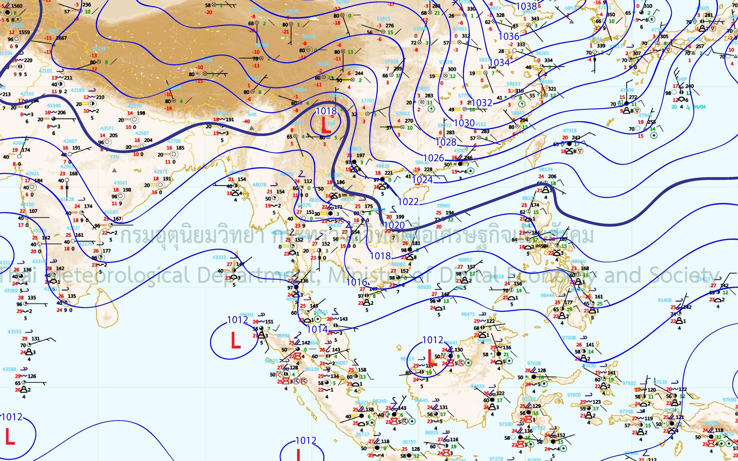 - พยากรณ์อากาศ 24 ชั่วโมงข้างหน้า ภาคเหนือ ภาคตะวันออกเฉียงเหนือ ภาคกลาง และภาคตะวันออก มีฝนฟ้าคะนองและมีลมกระโชกแรงบางแห่ง โดยประเทศไทยตอนบนมีอากาศร้อนในตอนกลางวัน ขอให้ประชาชนระวังอันตรายจากฝนฟ้าคะนองและลมกระโชกแรง ควรหลีกเลี่ยงการอยู่ใกล้สิ่งปลูกสร้างและป้ายโฆษณาที่ไม่แข็งแรง รวมทั้งต้นไม้ใหญ่ สำหรับเกษตรกรควรระมัดระวังและป้องกันความเสียหายต่อผลผลิตทางการเกษตรไว้ด้วย ส่วนภาคใต้มีฝนฟ้าคะนองเพิ่มขึ้น คลื่นลมบริเวณอ่าวไทยมีคลื่นสูง 1-2 เมตร