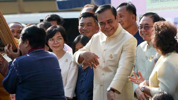 - วันที่ 18 ก.พ. 62 พล.อ.ประยุทธ์ จันทร์โอชา นรม. และหัวหน้า คสช. อารมณ์ดีโชว์ลีลาหมอลำกับ แม่ราตรี ศรีวิไล ราชินีหมอลำอีสาน จ.ขอนแก่น ที่ขับร้องอวยพรให้ นรม. สุขสมหวัง ระหว่างเดินชมงานประชาสัมพันธ์ โครงการชุมชนคุณธรรม น้อมนำหลักปรัชญาเศรษฐกิจพอเพียงขับเคลื่อนด้วยพลังบวร (บ้าน วัด โรงเรียน) ก่อนประชุม ครม. ที่ทำเนียบรัฐบาล.