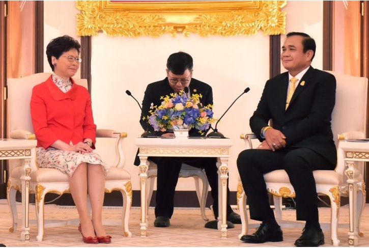 - พลโท วีรชน สุคนธปฏิภาค รองโฆษกประจำสำนักนายกรัฐมนตรี ได้กล่าวถึงการหารือระหว่างนางแคร์รี หล่ำ (Carrie Lam) ผู้บริหารสูงสุดเขตบริหารพิเศษฮ่องกง สาธารณรัฐประชาชนจีน ซึ่งเข้าเยี่ยมคารวะ พลเอก ประยุทธ์ จันทร์โอชา นายกรัฐมนตรีและหัวหน้าคณะรักษาความสงบแห่งชาติ (คสช.) ว่า ทั้งสองฝ่ายยินดีที่มูลค่าการค้าและการลงทุนระหว่างกันเพิ่มขึ้นอย่างต่อเนื่อง โดยพลเอก ประยุทธ์ จันทร์โอชา ได้เชิญให้บริษัทฮ่องกงมาร่วมลงทุนในโครงการ EEC ซึ่งสามารถเชื่อมโยงพื้นที่เศรษฐกิจ (Greater Bay Area – GBA) ได้แก่ กวางตุ้ง ฮ่องกง มาเก๊า รวมถึงอนุภูมิภาค ACMECS ด้วย โดยนายกรัฐมนตรีกล่าวเพิ่มเติมอีกว่า ไทยในฐานะที่จะเป็นประธานอาเซียนในปี 2562 นี้ ยินดีที่จะผลักดันความร่วมมือระหว่างอาเซียนและฮ่องกงในมิติต่าง ๆ ซึ่งนางแคร์รี หล่ำ ผู้บริหารสูงสุดเขตบริหารพิเศษฮ่องกง ได้กล่าวว่า ฮ่องกงถือเป็นศูนย์กลางทางการเงินที่สำคัญแห่งหนึ่งของโลก จึงพร้อมแลกเปลี่ยนความรู้และพัฒนาบุคลากรด้านเทคโนโลยีการเงินให้แก่ไทยเพื่อช่วยยกระดับมาตรฐานทางการเงินและการธนาคารของไทยและภูมิภาค รวมถึงส่งเสริมความร่วมมือด้านการศึกษาให้แก่ไทยโดยเฉพาะวิทยาการในสาขาที่ฮ่องกงมีความก้าวหน้า