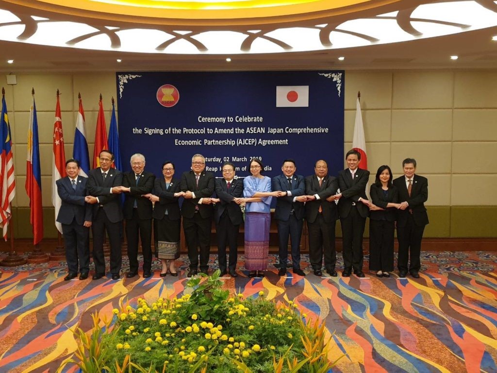 - นางสาวชุติมา บุณยประภัศร รมช.พณ. รักษาราชการแทน รมว.พณ. เปิดเผยว่า ในช่วงการประชุมรัฐมนตรี RCEP สมัยพิเศษ ครั้งที่ 7 เมื่อวันที่ 2 มี.ค. 62 ณ เมืองเสียมราฐ ประเทศกัมพูชา ไทยร่วมกับประเทศสมาชิกอาเซียนรวม 10 ประเทศได้ลงนามพิธีสารฉบับที่ 1 เพื่อแก้ไขความตกลงหุ้นส่วนเศรษฐกิจอาเซียน-ญี่ปุ่น หรือ AJCEP เพื่อเพิ่มข้อตกลงด้านการค้าบริการ การเคลื่อนย้ายบุคคลธรรมดา และการลงทุนในความตกลง AJCEP เดิมที่ได้จัดทำตั้งแต่ปี 2552 โดยเป็นความตกลงซึ่งครอบคลุมเฉพาะเรื่องการค้าสินค้า โดยพิธีสารฉบับแก้ไขดังกล่าวจะมีผลใช้บังคับภายในครึ่งปีหลังของปี 2562