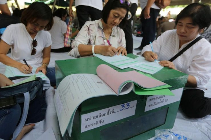 - ตามที่ปรากฏเป็นข่าวในสื่อสังคมออนไลน์ขณะนี้ว่าสำนักงานคณะกรรมการการเลือกตั้ง (กกต.) ได้จัดเตรียมปากกาเคมีที่มีลักษณะที่เมื่อผู้มีสิทธิเลือกตั้งได้ทำเครื่องหมายกากบาทลงในบัตรเลือกตั้ง และหมึกจางหายไปเอง และจะทำให้บัตรเลือกตั้งนั้นเป็นบัตรเสีย จึงขอให้ผู้มีสิทธิเลือกตั้งได้เตรียมปากกาสีน้ำเงินไปทำเครื่องหมายในบัตรเลือกตั้งเองนั้น กกต. ขอเรียนว่า ในการจัดเตรียมวัสดุอุปกรณ์ สำหรับใช้ในการออกเสียงลงคะแนน โดยเฉพาะอุปกรณ์สำหรับทำเครื่องหมายกากบาทลงในบัตรเลือกตั้ง กกต. ได้จัดเตรียมปากกาหมึกแห้งสีน้ำเงินที่มีจำหน่ายในท้องตลาดสำหรับให้ผู้มีสิทธิเลือกตั้งใช้ทำเครื่องหมายกากบาทลงในบัตรเลือกตั้งเท่านั้น ซึ่งได้ดำเนินการให้เป็นไปตามคู่มือการปฏิบัติงาน ตลอดจนแนวทางปฏิบัติในการจัดเตรียมวัสดุอุปกรณ์สำหรับใช้ในการออกเสียงลงคะแนนที่ผ่านมาทุกครั้ง อย่างไรก็ตาม หากผู้มีสิทธิเลือกตั้งไม่ประสงค์ใช้ปากกาที่จัดไว้ในคูหา สามารถใช้ปากกาที่นำมาเองทำเครื่องหมายในบัตรเลือกตั้งได้ ดังนั้น กรณีที่ปรากฏเป็นข่าวในสื่อสังคมออนไลน์ดังกล่าว จึงไม่มีมูลความจริงแต่อย่างใด