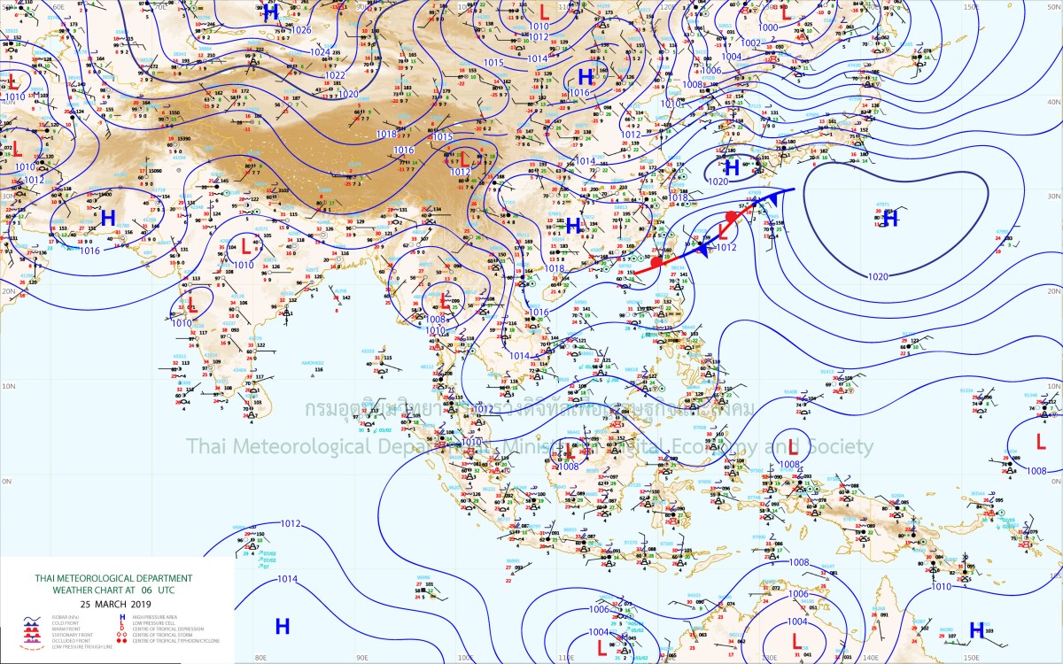- พยากรณ์อากาศ 24 ชั่วโมงข้างหน้า ประเทศไทยตอนบนมีอากาศร้อนถึงร้อนจัด โดยมีพายุฝนฟ้าคะนอง ลมกระโชกแรง และลูกเห็บตกบางพื้นที่ บริเวณภาคเหนือตอนล่าง ภาคตะวันออกเฉียงเหนือ ภาคตะวันออก และภาคกลางรวมทั้งกรุงเทพมหานครและปริมณฑล จึงขอให้ประชาชนบริเวณดังกล่าวระวังอันตรายจากพายุฤดูร้อนที่จะเกิดขึ้น โดยหลีกเลี่ยงการอยู่ในที่โล่งแจ้ง ใต้ต้นไม้ใหญ่ สิ่งปลูกสร้างและป้ายโฆษณาที่ไม่แข็งแรง รวมถึงระวังอันตรายจากฟ้าผ่า สำหรับเกษตรกรควรเตรียมการป้องกันและระวังความเสียหายที่จะเกิดต่อผลผลิตทางการเกษตรไว้ด้วย ส่วนภาคใต้มีฝนฟ้าคะนองเพิ่มขึ้นกับมีลมกระโชกแรง
