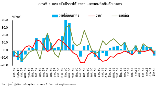 - น.ส.จริยา สุทธิไชยา เลขาธิการสำนักงานเศรษฐกิจการเกษตร (สศก.) คาดว่า แนวโน้มดัชนีเศรษฐกิจการเกษตร ซึ่งประกอบด้วย ดัชนีผลผลิตสินค้าเกษตร ดัชนีราคาสินค้าเกษตรที่เกษตรกรขายได้ และดัชนีรายได้เกษตรกร ไตรมาส 2 ปี 2562 ดัชนีรายได้เกษตรกร อยู่ที่ระดับ 148.39 เพิ่มขึ้น 1.10% เมื่อเทียบกับช่วงเดียวกันของปีที่ผ่านมา เป็นผลมาจากดัชนีผลผลิตสินค้าเกษตร เพิ่มขึ้น 0.24% และดัชนีราคาสินค้าเกษตร เพิ่มขึ้น 0.86% โดยมีปัจจัยบวกจากการดำเนินนโยบายด้านการเกษตรเพื่อปฏิรูปภาคเกษตรอย่างต่อเนื่อง ซึ่งเป็นความร่วมมือระหว่างภาครัฐ ภาคเอกชน และภาคประชาสังคม