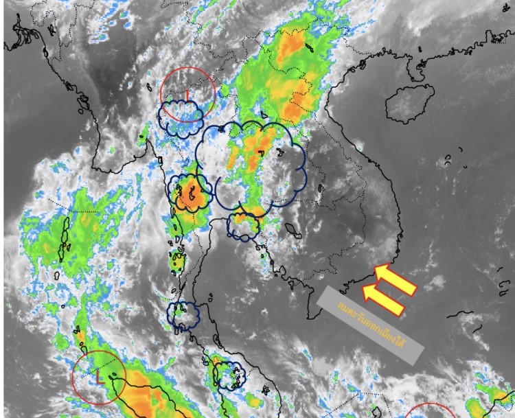 - ภาคเหนือ อากาศร้อนในตอนกลางวัน โดยมีพายุฝนฟ้าคะนอง ร้อยละ 40 ของพื้นที่ กับมีลมกระโชกแรง อุณหภูมิ 18-37 องศาเซลเซียส ภาคตะวันออกเฉียงเหนือ อากาศร้อนในตอนกลางวัน โดยมีฝนฟ้าคะนอง ร้อยละ 10 ของพื้นที่ กับมีลมกระโชกแรงบางแห่ง อุณหภูมิ 23-39 องศาเซลเซียส ภาคกลาง อากาศร้อนในตอนกลางวัน โดยมีฝนฟ้าคะนอง ร้อยละ 20 ของพื้นที่ กับมีลมกระโชกแรงบางแห่ง อุณหภูมิ 25-38 องศาเซลเซียส ภาคตะวันออก อากาศร้อนในตอนกลางวัน โดยมีฝนฟ้าคะนอง ร้อยละ 10 ของพื้นที่ อุณหภูมิ 24-39 องศาเซลเซียส ภาคใต้ มีฝนฟ้าคะนอง ร้อยละ 10 ของพื้นที่ อุณหภูมิ 24-37 องศาเซลเซียส และกรุงเทพมหานครและปริมณฑล อากาศร้อนในตอนกลางวัน โดยมีฝนฟ้าคะนอง ร้อยละ 30 ของพื้นที่ อุณหภูมิ 27-38 องศาเซลเซียส