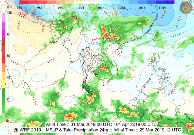 - กรมอุตุนิยมวิทยาประกาศเตือน ฉบับ 2 พายุฤดูร้อนบริเวณประเทศไทยตอนบนในวันที่ 31 มี.ค.62 ถึง 3 เม.ย.62 กว่า50จังหวัดเสี่ยงเจอฝนฟ้าคะนอง ลมกระโชกแรง ลูกเห็บตก บางพื้นที่ โดยจะเริ่มจากภาคตะวันออกเฉียงเหนือ และภาคตะวันออกก่อน ส่วนภาคกลางและภาคเหนือจะได้รับผลกระทบในวันถัดไปจึงขอให้ประชาชนในบริเวณดังกล่าวระวังอันตรายจากพายุฤดูร้อนที่จะเกิดขึ้นโดยหลีกเลี่ยงการอยู่ในที่โล่งแจ้ง ใต้ต้นไม้ใหญ่ สิ่งปลูกสร้างและป้ายโฆษณาที่ไม่แข็งแรงรวมถึงระวังอันตรายจากฟ้าผ่าสำหรับเกษตรกรควรเตรียมการป้องกันและระวังความเสียหายที่จะเกิดต่อผลผลิตทางการเกษตรไว้ด้วย