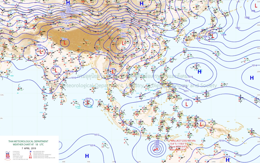- พยากรณ์อากาศ 24 ชั่วโมงข้างหน้า ประเทศไทยตอนบนมีอากาศร้อนโดยทั่วไปกับมีอากาศร้อนจัดเป็นบางพื้นที่ โดยมีฝนฟ้าคะนองบางแห่งในภาคเหนือตอนล่าง ภาคตะวันออกเฉียงเหนือ ภาคกลาง และภาคตะวันออก ขอให้ประชาชนบริเวณประเทศไทยตอนบนดูแลสุขภาพเนื่องจากสภาพอากาศร้อน และฝนฟ้าคะนอง ที่เกิดขึ้นในระยะนี้ สำหรับภาคใต้ยังคงมีฝนฟ้าคะนองบางแห่ง