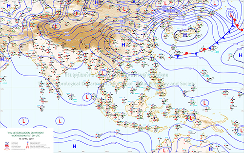 - ประเทศไทยตอนบนมีอากาศร้อนถึงร้อนจัดในตอนกลางวัน โดยมีพายุฝนฟ้าคะนอง ลมกระโชกแรง ลูกเห็บตก และฟ้าผ่าบางพื้นที่ บริเวณภาคตะวันออกเฉียงเหนือ ภาคตะวันออก ภาคกลาง และภาคเหนือตอนล่าง ขอให้ประชาชนบริเวณประเทศไทยตอนบนดูแลสุขภาพเนื่องจากสภาพอากาศร้อน และระวังอันตรายจากพายุฤดูร้อน ควรอยู่ห่างจากต้นไม้ใหญ่ สิ่งปลูกสร้าง ป้ายโฆษณาที่ไม่แข็งแรง รวมทั้งหลีกเลี่ยงกิจกรรมกลางแจ้ง เกษตรกรควรระวังและป้องกันความเสียหายต่อผลผลิตทางการเกษตรไว้ด้วย ภาคใต้มีฝนฟ้าคะนองบางแห่ง