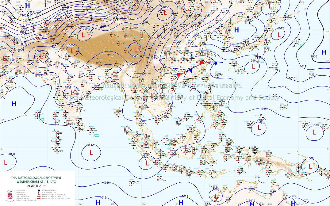 - ประเทศไทยตอนบนมีอากาศร้อนโดยทั่วไปและมีอากาศร้อนจัดหลายพื้นที่ โดยมีฝนฟ้าคะนองและลมกระโชกแรงบางแห่ง บริเวณภาคเหนือ ภาคตะวันออกเฉียงเหนือ ภาคกลาง และภาคตะวันออก ขอให้ประชาชนบริเวณประเทศไทยตอนบนดูแลสุขภาพเนื่องจากสภาพอากาศที่ร้อน ควรหลีกเลี่ยงกิจกรรมกลางแจ้ง และระวังอันตรายจากลมกระโชกแรง ควรอยู่ห่างจากต้นไม้ใหญ่ สิ่งปลูกสร้าง และป้ายโฆษณาที่ไม่แข็งแรง สำหรับภาคใต้มีฝนฟ้าคะนองเพิ่มขึ้น