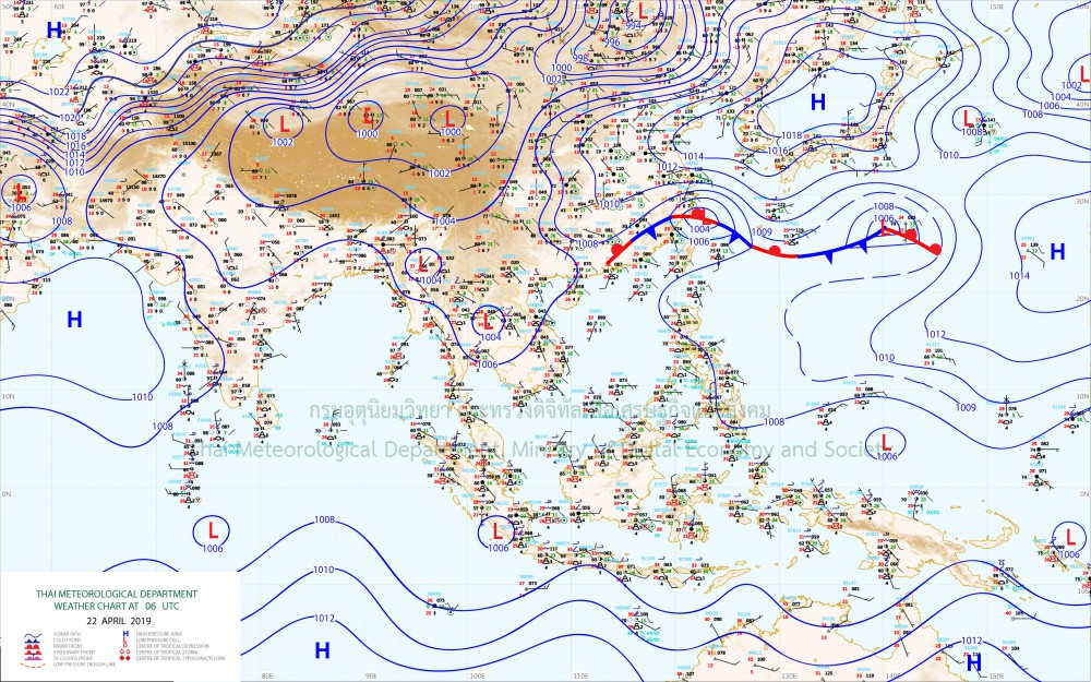- พยากรณ์อากาศ 24 ชั่วโมงข้างหน้า ประเทศไทยตอนบนมีอากาศร้อนโดยทั่วไปและมีอากาศร้อนจัดหลายพื้นที่ โดยมีฝนฟ้าคะนองและลมกระโชกแรงบางแห่ง บริเวณภาคเหนือ ภาคตะวันออกเฉียงเหนือ ภาคกลาง และภาคตะวันออก ขอให้ประชาชนบริเวณประเทศไทยตอนบนดูแลสุขภาพเนื่องจากสภาพอากาศที่ร้อนควรหลีกเลี่ยงกิจกรรมกลางแจ้ง และระวังอันตรายจากลมกระโชกแรง ควรอยู่ห่างจากต้นไม้ใหญ่ สิ่งปลูกสร้าง และป้ายโฆษณาที่ไม่แข็งแรง สำหรับภาคใต้ยังคงมีฝนฟ้าคะนองบางพื้นที่