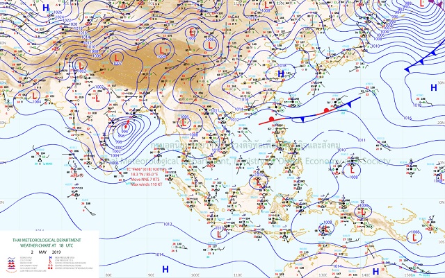 ประเทศไทยตอนบนมีพายุฤดูร้อนเกิดขึ้น โดยมีลักษณะของพายุฝนฟ้าคะนองและลมกระโชกแรง กับมีลูกเห็บตกบางแห่งบริเวณภาคเหนือ ภาคตะวันออกเฉียงเหนือ และภาคตะวันออก ขอให้ประชาชนบริเวณดังกล่าวระวังอันตรายจากพายุฝนฟ้าคะนอง ลมกระโชกแรง รวมถึงฟ้าผ่า ควรอยู่ห่างจากต้นไม้ใหญ่ สิ่งปลูกสร้าง และป้ายโฆษณาที่ไม่แข็งแรง ส่วนภาคใต้ยังคงมีฝนฟ้าคะนองบางแห่ง ส่วนในเขต กทม. และปริมณฑล มีฝนฟ้าคะนอง ร้อยละ 10 ของพื้นที่ อุณหภูมิต่ำสุด 27-28 องศาเซลเซียส อุณหภูมิสูงสุด 35-39 องศาเซลเซียส ลมใต้ ความเร็ว 10-15 กม./ชม