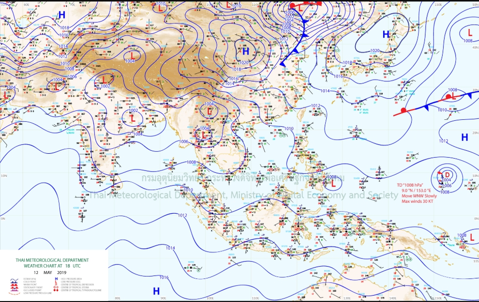 - ประเทศไทยตอนบนยังคงมีอากาศร้อน โดยภาคเหนือตอนล่าง ภาคตะวันออกเฉียงเหนือ ภาคกลาง ภาคตะวันออก และภาคใต้ มีฝนฟ้าคะนองเพิ่มมากขึ้น กับมีฝนตกหนักบางแห่ง