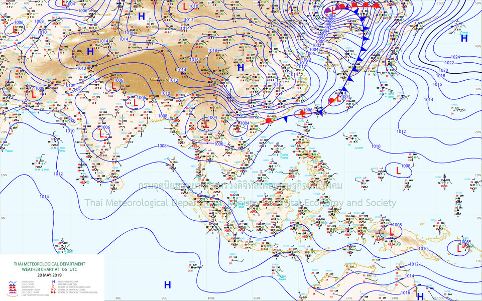 - พยากรณ์อากาศ 24 ชั่วโมงข้างหน้า บริเวณภาคใต้และภาคตะวันออกมีฝนเพิ่มขึ้น กับมีฝนตกหนักบางแห่ง ส่วนภาคเหนือ ภาคตะวันออกเฉียงเหนือ และภาคกลางจะมีฝนเพิ่มขึ้นในวันที่ 21 พ.ค. 62 สำหรับทะเลอันดามันมีคลื่นสูงประมาณ 2 เมตร บริเวณที่มีฝนฟ้าคะนองคลื่นสูง 2-3 เมตร ขอให้ชาวเรือบริเวณดังกล่าวเดินเรือด้วยความระมัดระวัง