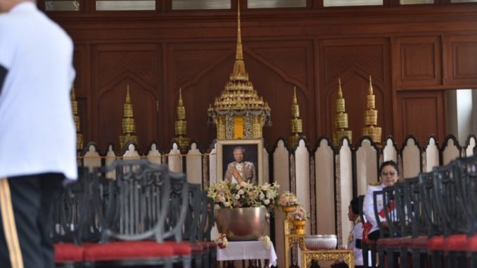 วันที่ 27 พ.ค. 62 เวลา 14.05 น. ที่พระที่นั่งทรงธรรม วัดเบญจมบพิตรดุสิตวนาราม ร่างของพล.อ.เปรม ติณสูลานนท์ ประธานองคมนตรีและรัฐบุรุษ ได้เคลื่อนย้านมาถึงด้วยรถตู้พยาบาลของโรงพยาบาล