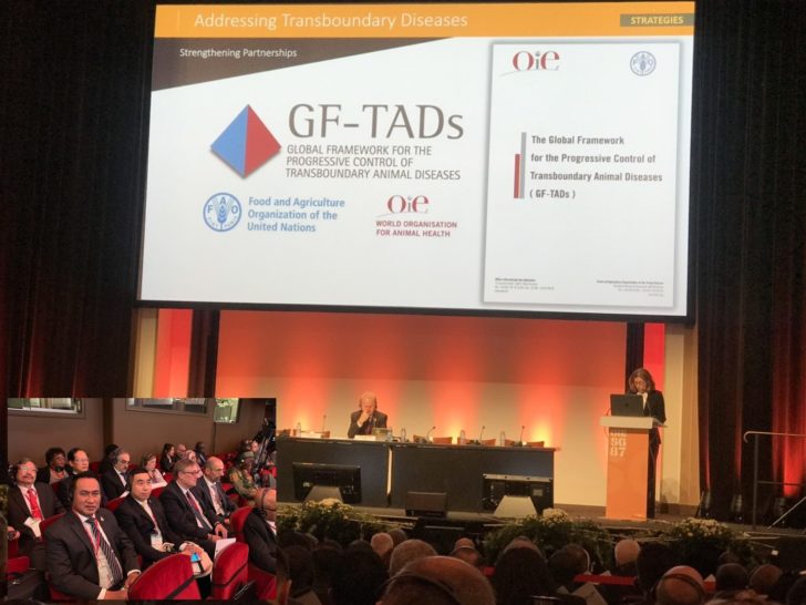 โดยในที่ประชุม ดร.โมนิกค์ เอลัว ผู้อำนวยการใหญ่ OIE กล่าวถึงความสำเร็จผลงานในรอบปีที่ผ่านมา ซึ่ง FAO และ OIE ได้ร่วมจัดทำกรอบแผนงานระดับโลกเกี่ยวกับการควบคุมโรคระบาดสัตว์ข้ามพรมแดน ปัญหาเชื้อดื้อยา โครงการปรับปรุงการป้องกันโรคในสัตว์น้ำ และโครงการกำจัดโรค PPR ในแพะ-แกะให้หมดไป (Global PPR Eradication Campaign) ซึ่งได้รับการสนับสนุนจากธนาคารโลก (World Bank) และกองทุนระหว่างประเทศเพื่อพัฒนาเกษตรกรรม (IFAD)