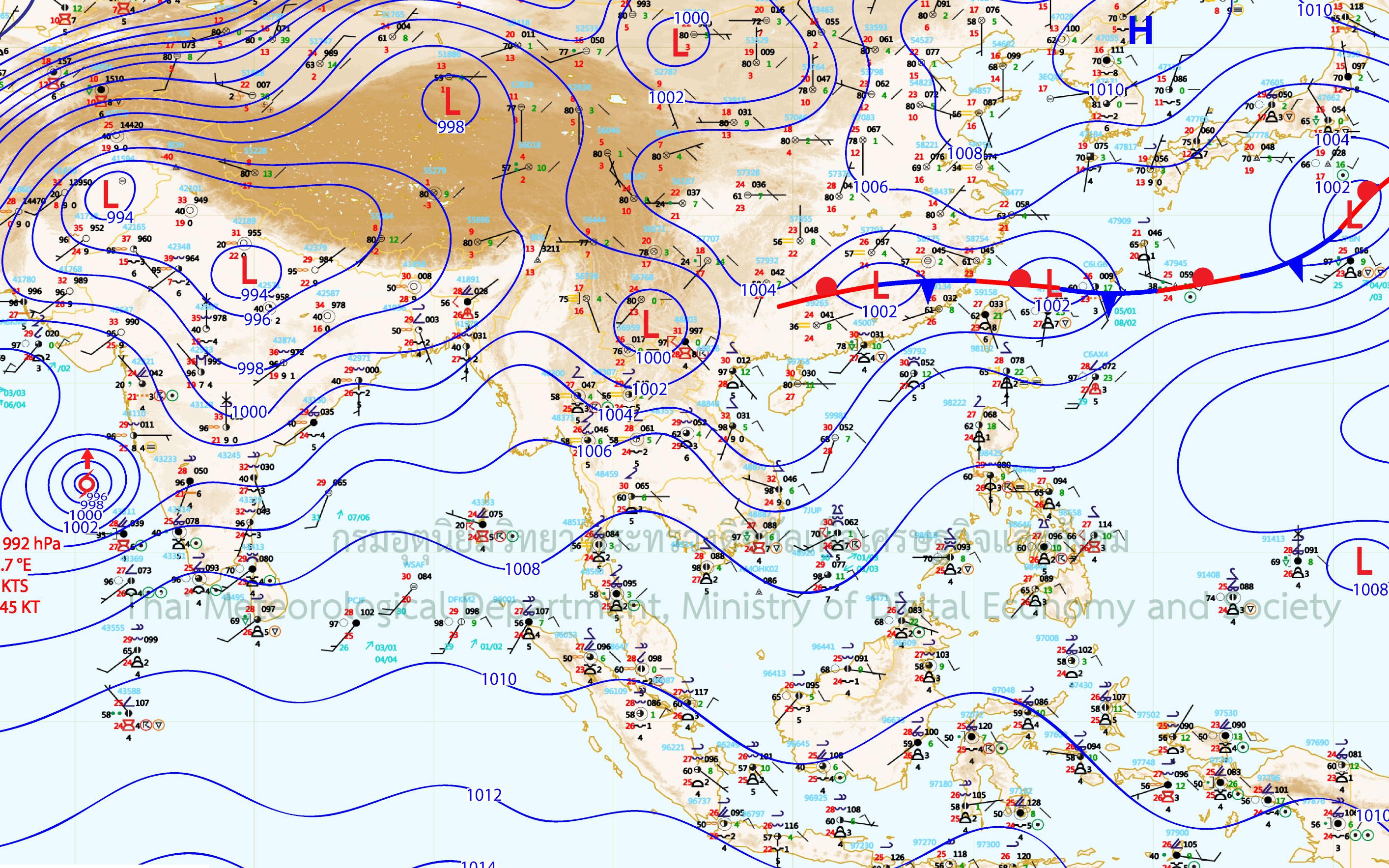 - พยากรณ์อากาศ 24 ชั่วโมงข้างหน้า ประเทศไทยมีฝนตกต่อเนื่อง โดยบริเวณภาคเหนือ ภาคกลาง ภาคตะวันออก และภาคใต้ฝั่งตะวันตก มีฝนตกหนักบางแห่ง ขอให้ประชาชนบริเวณดังกล่าวระวังอันตรายจากฝนตกหนักและฝนที่ตกสะสม ซึ่งอาจทำให้เกิดน้ำท่วมฉับพลันและน้ำป่าไหลหลากได้ สำหรับคลื่นลมบริเวณทะเลอันดามันและอ่าวไทยตอนบนมีกำลังแรงขึ้น โดยบริเวณทะเลอันดามันตอนบน ตั้งแต่จังหวัดภูเก็ตขึ้นไป มีคลื่นสูง 2-3 เมตร ขอให้ชาวเรือเดินเรือด้วยความระมัดระวัง และเรือเล็กบริเวณทะเลอันดามันตอนบน ควรงดออกจากฝั่งในระยะ 1-2 วันนี้