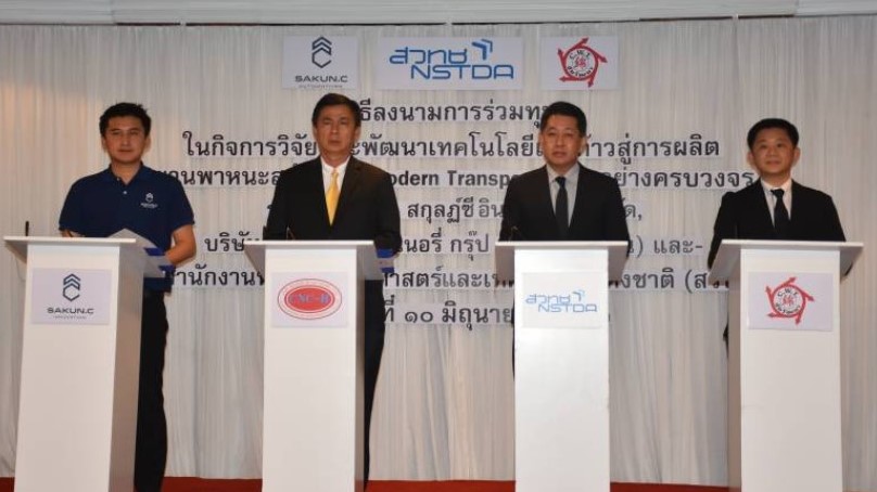- เมื่อวันที่ 10 มิ.ย. กระทรวงการอุดมศึกษา วิทยาศาสตร์ วิจัยและนวัตกรรม (อว.) โดย สำนักงานพัฒนาวิทยาศาสตร์และเทคโนโลยีแห่งชาติ (สวทช.) ร่วมกับ บริษัท สกุลฎ์ซี อินโนเวชั่น จำกัด กลุ่มบริษัท โชคนำชัย และบริษัท ชัยวัฒนา แทนเนอรี่ กรุ๊ป จำกัด (มหาชน) จัดพิธีลงนามการร่วมทุนในกิจการวิจัยและพัฒนาเทคโนโลยีเพื่อก้าวสู่การผลิตยานพาหนะสมัยใหม่แบบครบวงจร (Modern Transportation) เพื่อต่อยอดอุตสาหกรรมผลิตยานพาหนะสมัยใหม่แบบครบวงจร ดร.ณรงค์ ศิริเลิศวรกุล ผู้อำนวยการ สวทช. เปิดเผยว่า “กลไกการร่วมลงทุน” เป็นกลไกสำคัญในการผลักดันให้เกิดการใช้วิทยาศาสตร์ เทคโนโลยี และนวัตกรรม (วทน.) ตามนโยบายไทยแลนด์ 4.0 ซึ่งกำหนดการวิจัยและนวัตกรรมขนาดใหญ่เพื่อขับเคลื่อนยุทธศาสตร์การวิจัยและนวัตกรรม 20 ปี (พ.ศ. 2560-2579) โดย สวทช. ร่วมมือเพื่อถ่ายทอดเทคโนโลยีที่เหมาะสมกับการต่อยอดพัฒนาผลิตภัณฑ์ของบริษัท สกุลฎ์ซี อินโนเวชั่น จำกัด ซึ่งการร่วมลงทุนในครั้งนี้ เป็นก้าวสำคัญในการผลักดันให้อุตสาหกรรมยานยนต์สมัยใหม่ในประเทศ โดยทีมงานคนไทยที่สร้างโรงงานผลิตเรือและรถโดยสารขนาดเล็กจากอลูมิเนียมในระดับอุตสาหกรรมขึ้นเป็นแห่งแรกของประเทศไทย นอกจากนี้ยังตอบโจทย์การเพิ่มความเข้มแข็งของประเทศ เปลี่ยนจากผู้นำเข้าเป็นผู้พัฒนาเพื่อใช้เอง ลดการนำเข้าจากต่างประเทศ