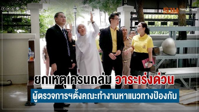 - ยกเหตุเครนถล่มวาระเร่งด่วนผู้ตรวจการฯ ตั้งคณะทำงานหาแนวทางป้องกัน – วันที่ 24 มิ.ย. 2562 นายกีรป กฤตธีรานนท์ รองเลขาธิการสำนักงานผู้ตรวจการแผ่นดิน ซึ่งได้รับมอบหมายจาก นายบูรณ์ ฐาปนดุลย์ ผู้ตรวจการแผ่นดิน ได้ลงพื้นที่เพื่อรวบรวมข้อมูลข้อเท็จจริงทั้งหมดโดยประชุมร่วมกับ ผู้แทนสำนักงานเขตบางรัก กรุงเทพมหานคร โรงเรียนอัสสัมชัญคอนแวนต์ (บางรัก) และหน่วยงานอื่น ๆ ที่เกี่ยวข้องเพื่อร่วมกันหาแนวทาง สร้างระบบ และวางมาตรการด้านความปลอดภัยให้รัดกุมและเข้มขึ้น รวมทั้งสนับสนุนการบังคับใช้กฎหมายให้จริงจังมากยิ่งขึ้น ทั้งนี้ ผู้ตรวจการแผ่นดิน ได้มอบหมายให้ดำเนินการเป็นวาระเร่งด่วนโดยจัดตั้งคณะทำงานดำเนินการเร่งหาแนวทางแก้ไขเชิงระบบทั้งเรื่องการก่อสร้างอาคารสูงและรถไฟฟ้าในเขตชุมชนของกรุงเทพมหานครเพื่อเสนอต่อเลขาธิการสำนักงานผู้ตรวจการแผ่นดินให้ความเป็นธรรมต่อไป