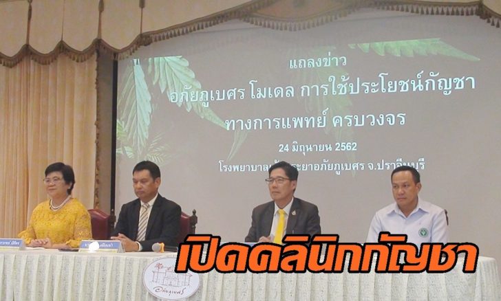 - “อภัยภูเบศร” ชงอภัยภูเบศรโมเดล พร้อมเป็นต้นแบบกัญชาเพื่อการแพทย์ – วันที่ 24 มิถุนายน 2562 โรงพยาบาลเจ้าพระยาอภัยภูเบศร จัดการเสวนาอภัยภูเบศรโมเดล การใช้ประโยชน์กัญชาทางการแพทย์ครบวงจรแห่งแรกในประเทศไทย และเปิดคลินิกกัญชา ในโอกาสครบรอบ 78 ปี สถาปนาโรงพยาบาลเจ้าพระยาอภัยภูเบศร โดยมีวิทยากรหลากหลายแขนงเข้าร่วมเสวนา อาทิ นพ. ธเรศ กรัษนัยรวิวงศ์ เลขาธิการคณะกรรมการอาหารและยา (อย.) กล่าวว่า อย. สนับสนุนให้หน่วยงานที่มีศักยภาพผลิตสารสกัดกัญชา โดย รพ. เจ้าพระยาอภัยภูเบศร เป็นหนึ่งใน 4 รายที่ได้รับอนุญาตให้ปลูกกัญชา เนื่องจากเห็นว่า รพ. ฯ มีความเชี่ยวขาญด้านสมุนไพรมาเป็นเวลานาน จึงมีศักยภาพในการเป็นต้นแบบ เพื่อให้ได้กัญชาที่ปลอดภัย