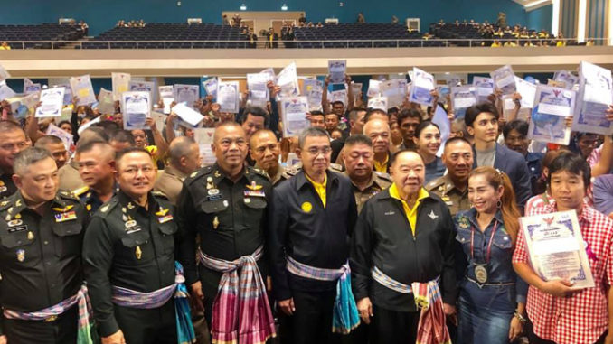 - ที่ห้องประชุมพระนารายณ์ อาคารรัตนเทพสตรี มหาวิทยาลัยราชภัฏเทพสตรี จังหวัดลพบุรี พลเอก ประวิตร วงษ์สุวรรณ รองนายกรัฐมนตรี และรัฐมนตรีว่าการกระทรวงกลาโหม เป็นประธานในพิธีมอบคืนโฉนดที่ดินและทรัพย์สิน คืนความสุขให้ประชาชน เพื่อลดความเหลื่อมล้ำของสังคม ครั้งที่ 12 ตามยุทธการ “ขุดรากถอนโคนอาชญากรรม ทำบ้านเมืองให้น่าอยู่” ของสำนักงานตำรวจแห่งชาติ โดย พลเอก ประวิตร ฯ ได้ให้สัมภาษณ์ในภายหลังว่า โครงการแก้ปัญหาหนี้สินของประชาชนนี้ยังคงเดินหน้าต่อไป และยังเหลือการดำเนินการอีกประมาณ 30 กว่าจังหวัด ซึ่งก็ขึ้นอยู่กับรัฐบาลด้วยว่าจะมาสานต่องานหรือไม่ ส่วนกรณีที่มีชาวบ้านมายื่นหนังสือร้องเรียนรายชื่อตกหล่นจากการช่วยเหลือในโครงการดังกล่าวนั้น พลเอก ประวิตร ฯ ได้มีการสั่งการให้เจ้าหน้าที่ดำเนินการแก้ไขแล้ว นอกจากนี้ พลเอก ประวิตร ฯ ได้กล่าวขอบคุณนายทุนที่ยอมรับการเข้ากระบวนการไกล่เกลี่ยเพื่อแก้ไขปัญหาดังกล่าวร่วมกันด้วย รวมถึงเจ้าหน้าที่ทุกฝ่ายที่ได้พยายามช่วยเหลือประชาชน และตั้งใจในการทำงานเป็นอย่างดี สำหรับการดำเนินการของศูนย์ปฏิบัติการป้องกันและปราบปรามการฉ้อโกงทรัพย์สินของประชาชน สำนักงานตำรวจแห่งชาติ ในพื้นที่ของกองบังคังคับการตำรวจภูธรภาค 1 นั้น ได้มีการจับกุมดำเนินคดีผู้ต้องหา 57 คดี ยึดของกลาง 876 รายการ มูลค่า 19,665,210 บาท โดยสามารถไกล่เกลี่ยสำเร็จ 567 ราย ส่วนทรัพย์สินที่คืนให้ประชาชน มีโฉนดที่ดิน 661 ฉบับ มูลค่า 2,896,200,000 บาท รวมเนื้อที่ 1,050 ไร่ 3 งาน 74 ตารางวา
