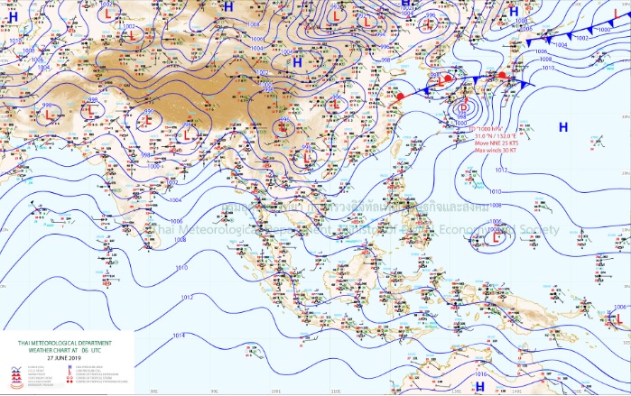 - ประเทศไทยยังคงมีฝนฟ้าคะนองเกิดขึ้น และมีฝนตกหนักบางแห่งบริเวณด้านตะวันตกของภาคเหนือ ภาคตะวันออก และภาคใต้ สำหรับทะเลอันดามันมีคลื่นสูง 2-3 เมตร และอ่าวไทยตอนบนมีคลื่นสูงประมาณ 2 เมตร ข้อควรระวัง ขอให้ประชาชนบริเวณด้านตะวันตกของภาคเหนือ ภาคตะวันออก และภาคใต้ ระวังอันตรายจากฝนที่ตกสะสม สำหรับชาวเรือบริเวณทะเลอันดามันและอ่าวไทยตอนบนควรเดินเรือด้วยความระมัดระวัง เรือเล็กควรงดออกจากฝั่ง