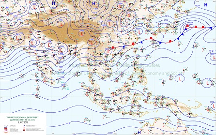 - ประเทศไทยยังคงมีฝนฟ้าคะนอง โดยมีฝนตกหนักบางแห่งบริเวณภาคตะวันออก ขอให้ประชาชนบริเวณ ด้านตะวันตกของภาคเหนือ ภาคกลาง และภาคตะวันออกระวังอันตรายจากฝนที่ตกสะสมไว้ด้วย สำหรับทะเลอันดามันและอ่าวไทยตอนบนมีคลื่นสูงประมาณ 2 เมตร บริเวณที่มีฝนฟ้าคะนองคลื่นสูงมากกว่า 2 เมตร