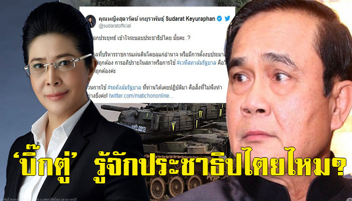 - คุณหญิงสุดารัตน์ เกยุราพันธุ์ แกนนำพรรคเพื่อไทยโพสต์ข้อความผ่านเฟซบุ๊กแสดงความเห็นกรณี พล.อ.ประยุทธ์ จันทร์โอชา นายกรัฐมนตรีและหัวหน้า คสช.ให้สัมภาษณ์ต่อสื่อมวลชนโดยระบุตอนหนึ่งว่า “ขอร้องว่าอย่าใช้เวทีสภามาเป็นเรื่องด้อยค่า หรือล้มรัฐบาล ขอให้คำนึงถึงผลประโยชน์ของชาติและประชาชน” ว่า การอภิปรายในสภาคือการใช้เวทีตรวจสอบการทำงานของรัฐบาล ถ้าผิดต้องใช้ #เวทีสภาล้มรัฐบาล คือวิธีการที่ถูกต้องค่ะ และถือเป็นกลไกตรวจสอบถ่วงดุลอำนาจที่สำคัญ โดยฝ่ายนิติบัญญัติ ตามระบอบรัฐสภา