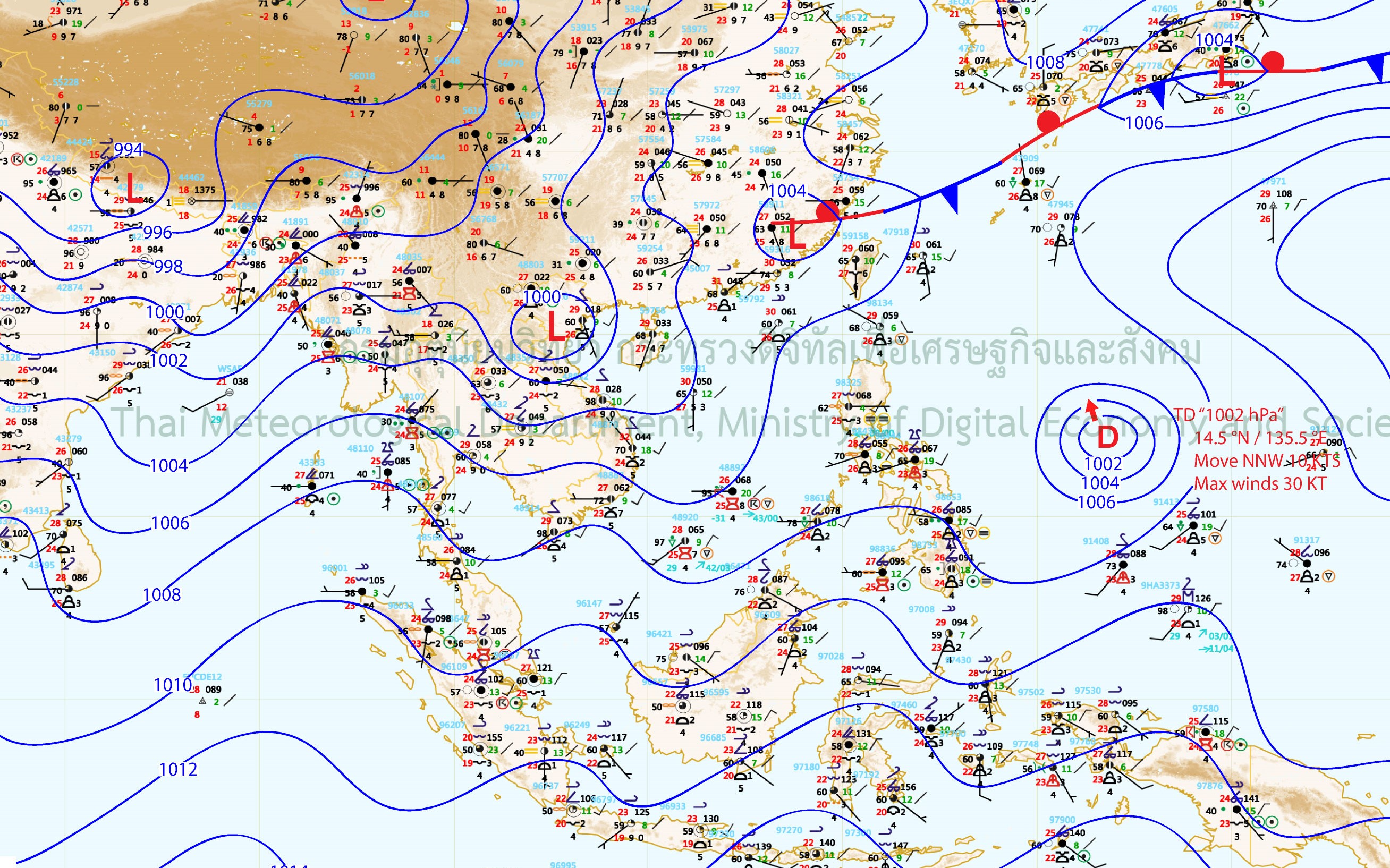 - ประเทศไทยตอนบนยังคงมีฝนฟ้าคะนองในระยะนี้ โดยเฉพาะด้านรับลมมรสุมทางด้านตะวันตกของภาคเหนือ ภาคกลาง ภาคตะวันออก ส่วนภาคใต้จะมีปริมาณฝนเพิ่มมากขึ้น สำหรับคลื่นลมบริเวณทะเลอันดามันและอ่าวไทยตอนบนมีกำลังแรงขึ้น โดยทะเลอันดามันมีคลื่นสูงประมาณ 2 เมตร บริเวณที่มีฝนฟ้าคะนองคลื่นสูงมากกว่า 2 เมตร ขอให้ชาวเรือเพิ่มความระมัดระวังในการเดินเรือ และหลีกเลี่ยงการเดินเรือบริเวณที่มีฝนฟ้าคะนอง อนึ่ง ในช่วงวันที่ 16 – 19 ก.ค. 62 ประเทศไทยจะมีปริมาณฝนเพิ่มขึ้น กับมีฝนตกหนักบางแห่งบริเวณภาคใต้และภาคตะวันออก สำหรับคลื่นลมทะเลอันดามัน และอ่าวไทยตอนบนมีคลื่นสูง 2-3 เมตร บริเวณที่มีฝนฟ้าคะนองคลื่นสูงมากกว่า 3 เมตร