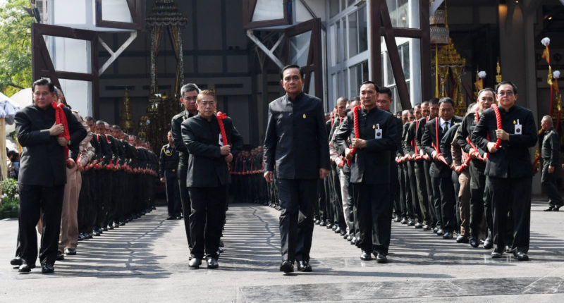 - นรม. เป็นประธานพิธีบวงสรวงอัญเชิญราชรถและพระยานมาศ หลังบูรณปฏิสังขรณ์ ออกจากโรงราชรถ เพื่อใช้ในพระราชพิธีถวายพระเพลิงพระบรมศพพระบาทสมเด็จพระปรมินทรมหาภูมิพลอดุลยเดช ตามโบราณราชประเพณีและเฉลิมพระเกียรติอย่างสูงสุด ณ มณฑลพิธีด้านหน้าโรงราชรถ พิพิธภัณฑสถานแห่งชาติ