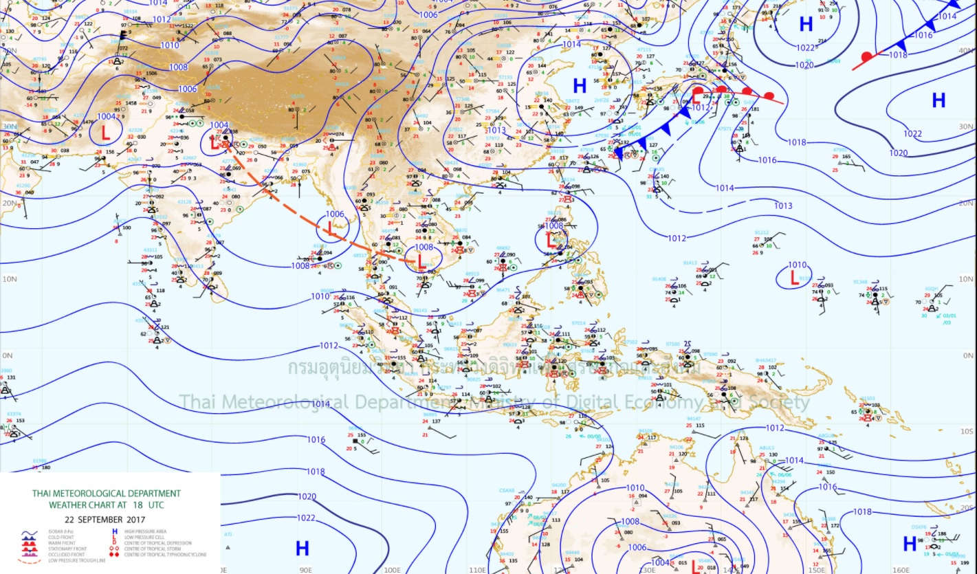 – ประเทศไทยมีฝนตกชุกหนาแน่นกับมีฝนตกหนักถึงหนักมากบางแห่งบริเวณภาคเหนือ ภาคตะวันออกเฉียงเหนือ ภาคกลางตอนล่าง ภาคตะวันออก ภาคใต้ รวมทั้งกรุงเทพฯและปริมณฑล สำหรับทะเลอันดามันและอ่าวไทยตอนบนมีคลื่นสูง 2-3 เมตร ช่วงวันที่ 27-28 ก.ย. ประเทศไทยมีฝนลดลง ทะเลอันดามันมีคลื่นสูงประมาณ 2 เมตร