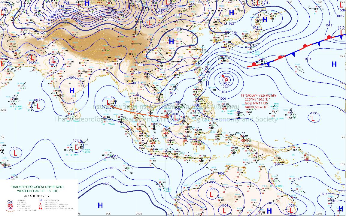 - ภาคเหนือและภาคตะวันออกเฉียงเหนืออากาศเย็น อุณหภูมิจะลดลงเล็กน้อย สำหรับภาคใต้มีฝนตกหนักบางพื้นที่ ขอให้ประชาชนบริเวณภาคใต้ระวังอันตรายจากฝนที่ตกหนักไว้ด้วย
