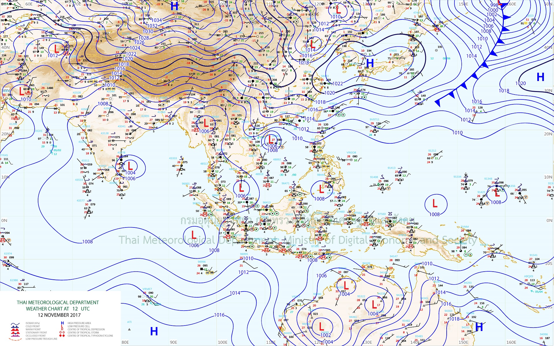 – ประเทศไทยตอนบนมีอุณหภูมิเปลี่ยนแปลงเล็กน้อย กับมีหมอกในตอนเช้า โดยมีฝนบางพื้นที่ ส่วนมากบริเวณภาคตะวันออก ภาคกลางตอนล่าง รวมทั้งกรุงเทพมหานครและปริมณฑล โดยเฉพาะภาคใต้มีฝนตกหนักบางแห่ง สำหรับคลื่นลมบริเวณอ่าวไทยและทะเลอันดามันมีคลื่นสูง 1-2 เมตร