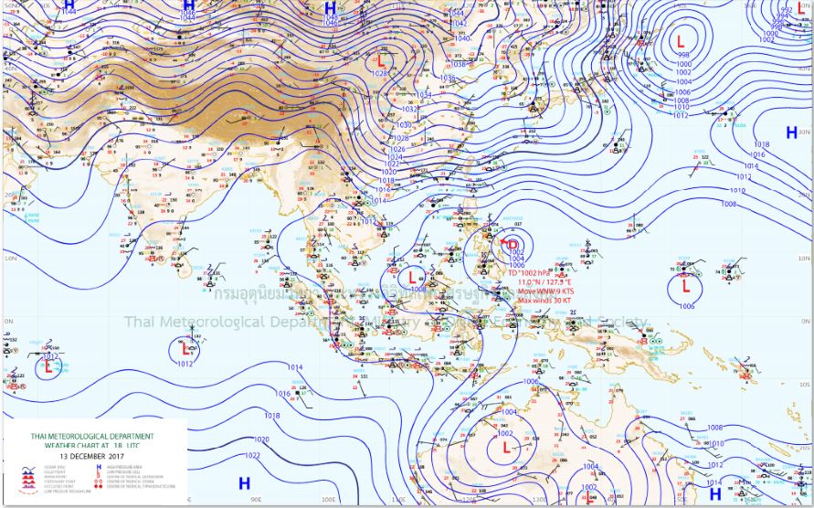 - พยากรณ์อากาศวันนี้ ภาคเหนือ ภาคตะวันออกเฉียงเหนือ และภาคกลาง ยังคงมีอากาศเย็นกับมีหมอกในตอนเช้ากับมีฝนบางพื้นที่ สำหรับภาคใต้มีฝนน้อย และคลื่นลมบริเวณอ่าวไทยตอนล่างมีกำลังอ่อนลง กรุงเทพมหานครและปริมณฑล ในช่วงวันที่ 14-15 ธ.ค. หมอกในตอนเช้า และมีฝนเล็กน้อยบางแห่งอุณหภูมิต่ำสุด 24-26 องศาเซลเซียส อุณหภูมิสูงสุด 30-34 องศาเซลเซียส ลมตะวันออกเฉียงใต้ ความเร็ว 15-30 กม. /ชม.