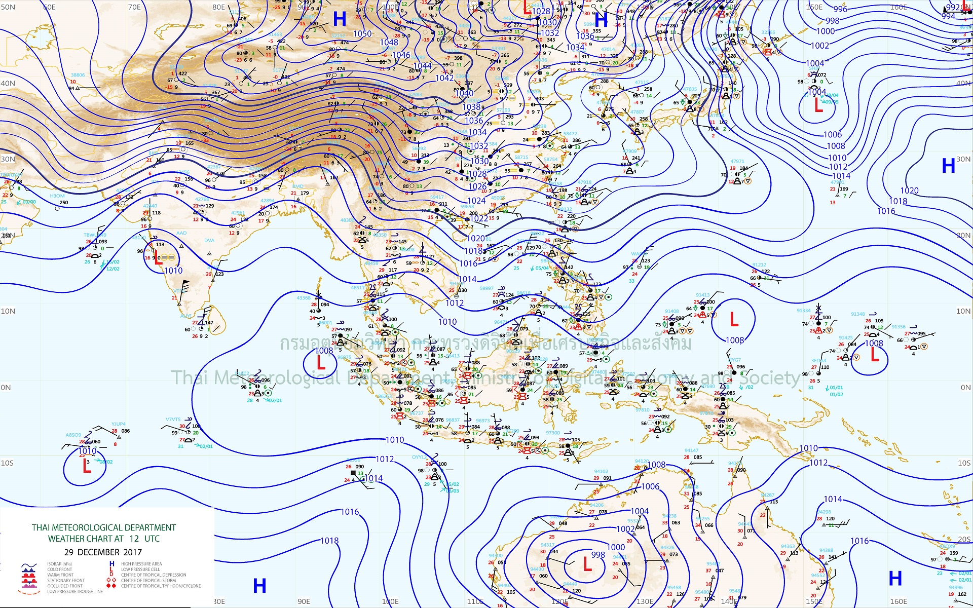 - ประเทศไทยตอนบนมีอากาศหนาวเย็น กับมีหมอกในตอนเช้า ขอให้ประชาชนดูแลสุขภาพเนื่องจากอากาศที่เปลี่ยนแปลง และระวังอันตรายในการสัญจรผ่านบริเวณที่มีหมอกไว้ด้วย สำหรับภาคใต้มีฝนตกหนักบางแห่งบริเวณตอนล่างของภาค ขอให้ประชาชนบริเวณดังกล่าวระวังอันตรายจากสภาวะฝนตกหนักไว้ด้วย ส่วนบริเวณอ่าวไทยมีคลื่นสูงประมาณ 2 เมตร ขอให้ชาวเรือเดินเรือด้วยความระวัดระวัง