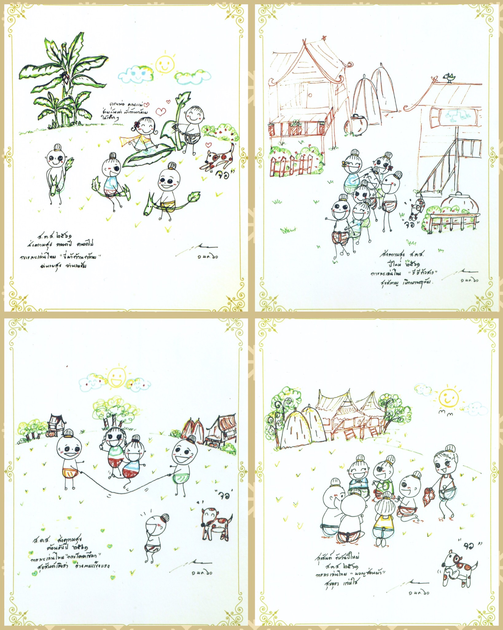 - สมเด็จพระเจ้าอยู่หัวทรงออกแบบภาพเขียนการ์ตูนฝีพระหัตถ์ ชุด “การละเล่นไทย” สมัยก่อน พระราชทานเพื่อจัดทำบัตรอวยพร ประจำปีพุทธศักราช 2561 พร้อมข้อความพระราชทานพรด้วยลายพระราชหัตถ์ และทรงลงพระปรมาภิไธยกำกับไว้จำนวน 4 แบบ ซึ่งเป็นการสะท้อนให้เห็นถึงวิถีชีวิตของคนไทย ที่บ่งบอกถึงบรรยากาศของความสงบสุข ร่มเย็น ความสนุกสนานรื่นเริง ความรักความสามัคคี อันเป็นเอกลักษณ์ของคนไทยและชาติไทย