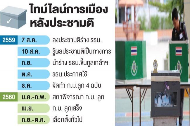 ข่าวในประเทศ   นรม. มอบหมายให้ผู้แทนนำแจกันดอกไม้มอบให้แก่ กรธ. เพื่อแสดงความยินดีจากที่ผลประชามติร่าง รธน. อย่างไม่เป็นทางการได้รับเสียงเห็นชอบข้างมากจากประชาชน อคส. ตั้งกรรมการสอบข้อเท็จจริง กรณี จนท.อคส. มีเอี่ยวทุจริตข้าว-มัน หลังลงพื้นที่ตรวจพบมันเส้นในสต็อกหายไป หากพบว่าทุจริต จะเอาผิดทางวินัย อาญา และแพ่ง ทั้งนี้ ให้เวลาตรวจสอบให้แล้วเสร็จภายใน 30 วัน ข่าวการเมือง   พล.อ.ประวิตรฯ […]